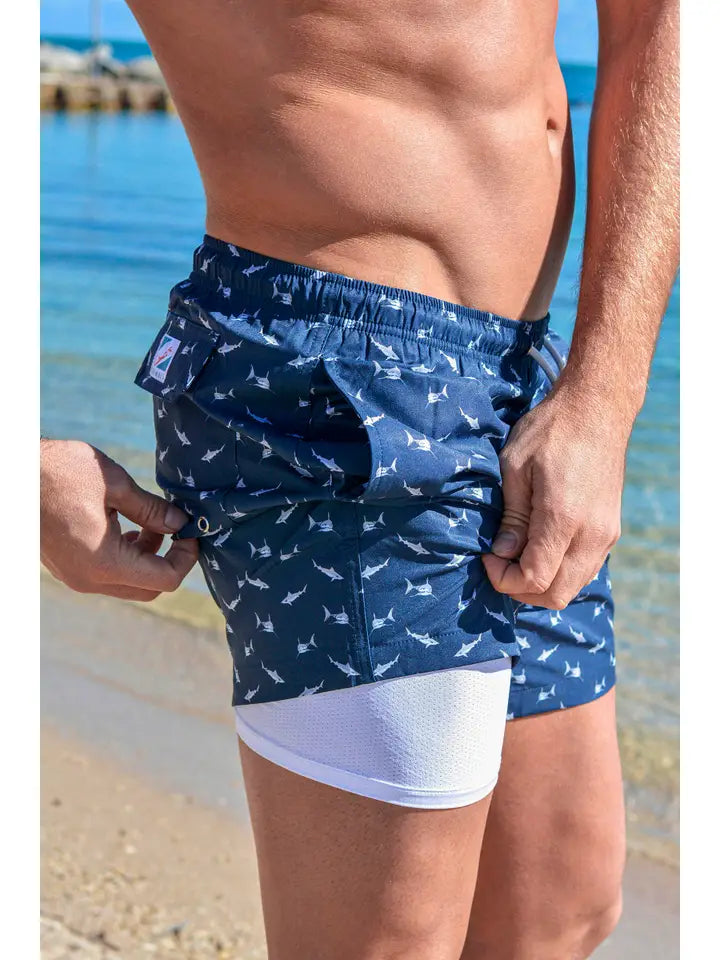 Experience superior comfort and style with the Sharks 6 Inch swim trunks, designed with an expert touch for active water enthusiasts. Crafted from eco-friendly, UPF 50+ fabric that offers water repellency and four-way stretch, these trunks move effortlessly with you. The built-in soft compression liner prevents chafing and adds support, while venting ensures no uncomfortable inflation during your swim. Practicality shines with a secure back pocket featuring an elastic key loop, letting you dive confidently without leaving essentials behind. Perfectly balanced in length, these trunks deliver both performance and sleek style for every adventure.